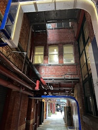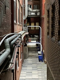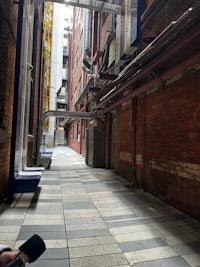 This alleyway bisecting the two buildings becomes an epitome of decentralised, not merely in the notion of its location but soo too in the notion that it becomes a hub for those to mitigate the congestion, allowing the free flowing of pedestrian traffic through a highly discrete and non promoted space. It unilaterally becomes a centralised path for the utilities and mechanicals of the two buildings to converge yet, becomes the unspoken, forgotten, unknown spaces that allows for personal connections and moments of accidental traversal that become part of the everyday. This composition focuses on the elements of Rhythm and Timbre and attempts to highlight the myriad of flowing pathways through different periods of time throughout a particular day. A sharp repetitive tone can be heard which intends to guide the litters into a sense on uneasy resembling a small area that is crowded, the accidental clashes on interaction that are forced through the journey.